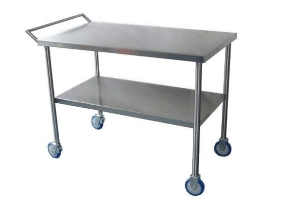 Fabricado em aço inoxidável AISI 304. Rodízios 3″, 2 fixos e 2 giratórios com trava.